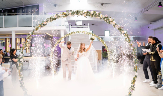 - Gemeinsam mit den Gästen schaffen wir eine lockere und entspannte Stimmung von Anfang an. Dafür organisiere ich einen feierlichen Empfang vom Brautpaar in der Hochzeitslocation, indem ich die Gäste in einer Art Spalier aufstelle und die Wedding Wands verteile.