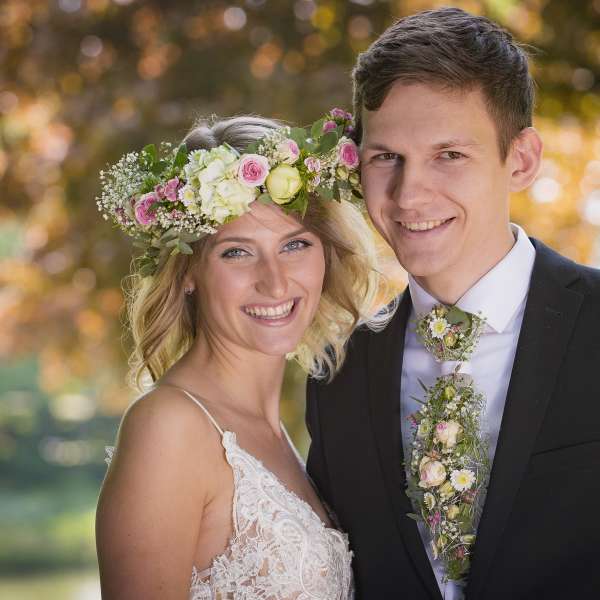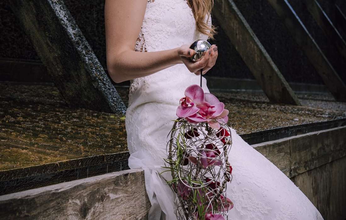Brautstrauß, Haarschmuck, Kirchendekoration, Tischdekoration, Autoschmuck, Streukörbchen – wir planen alles mit Ihnen bis ins Detail.