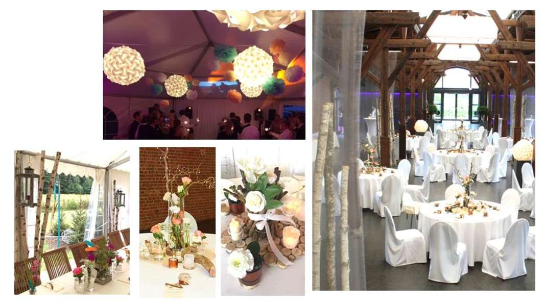 Es liegt an Ihnen, ob Sie einzelne Deko-Artikel mieten oder uns mit der kompletten Umsetzung beauftragen. Vom Polterabend, der Standesamts - und Kirchengestaltung, der Freien Trauung bis hin zur Innendekoration in kleinen und großen Räumen, von der individuellen Tischdekoration, der Decken- und Wandverkleidung bis hin zur indirekten Beleuchtung - Lassen Sie sich durch unsere Konzepte inspirieren oder ergänzen Sie Ihre Ideen mit den besonderen Accessoires aus unserem Fundus.