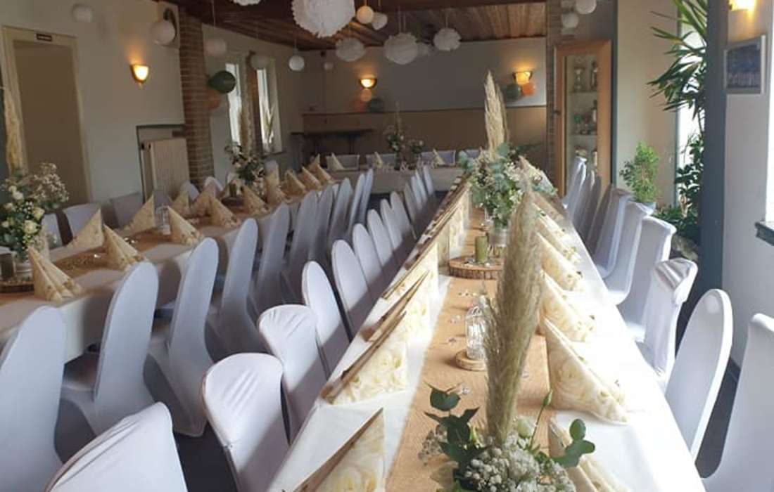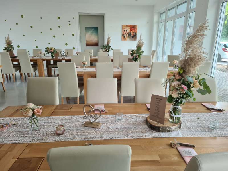 Nichts ist besser geeignet, als eine persönlich arrangierte Tischdekoration, um Ihren Gästen eine besondere Atmosphäre zu bieten. Egal ob es sich dabei um Ihre Lieblingsblumen oder Ihre Lieblingsfarbe handelt, in jedem Fall, finden wir für Sie die perfekte, ganz persönliche Tisch- und Saaldekoration.