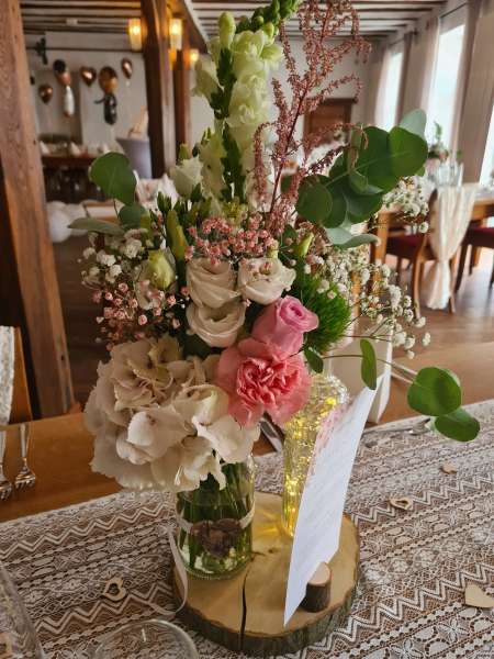Unser Familienbetrieb bietet Ihnen eine große Auswahl an Dekorationsarrangements für Tisch und Saal – bis ins Detail und Ihrer Vorstellung zu jeder Preisspanne. Ganz gleich zu welchem Anlass, Sie können darauf vertrauen, dass wir Ihre Dekoration individuell passend zu und mit Ihnen wählen.