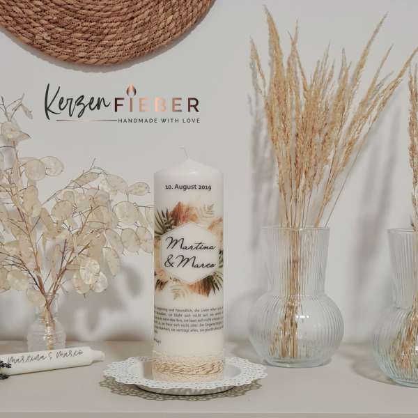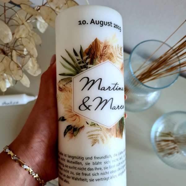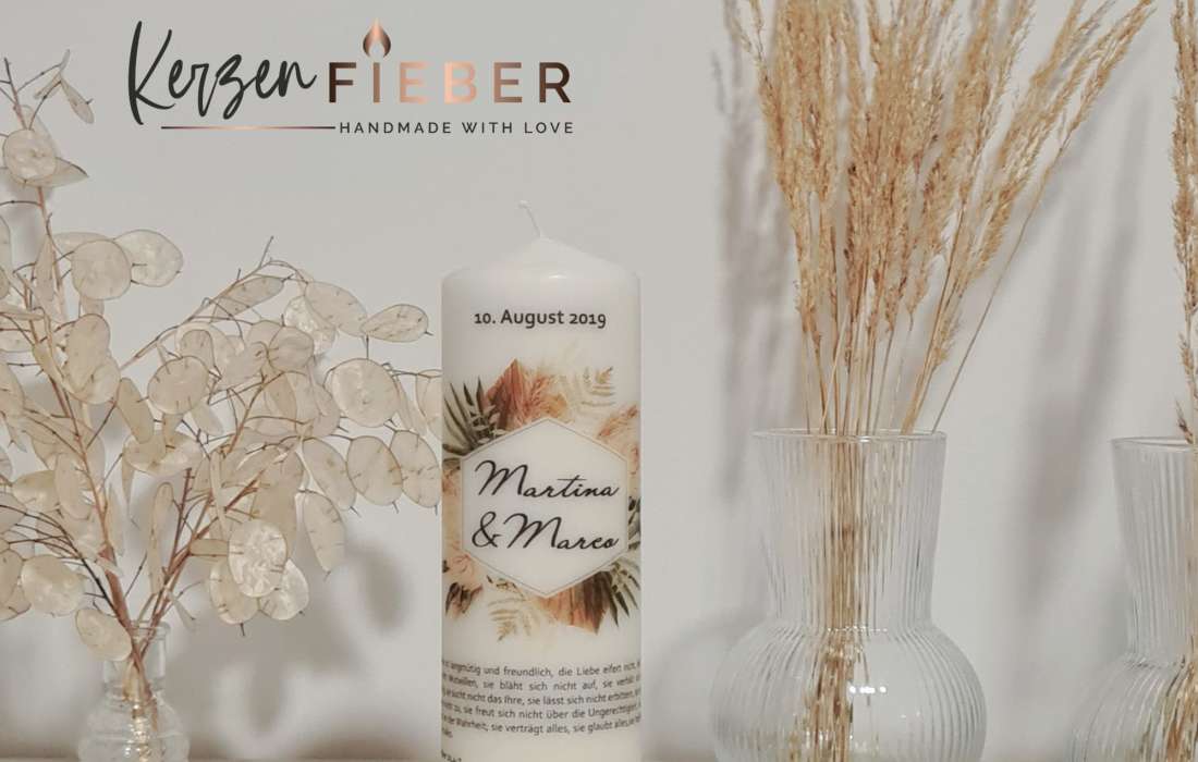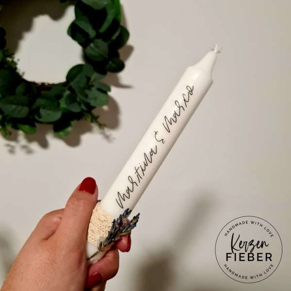 Gemeinsam mit Euch designe ich Eure perfekte Hochzeitskerze. Eure Hochzeitskerze ist das Highlight während Eurer Trauung und ein ewiges Andenken an Euren besonderen Tag.