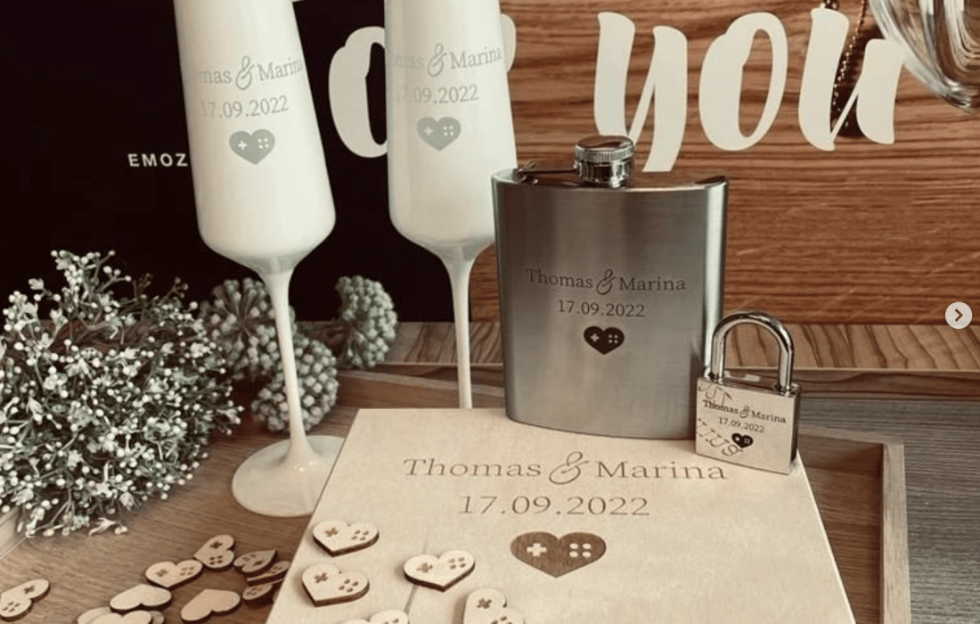LALALO - dein Experte für personalisierte Produkte mit individueller Note. Seit 2016 sind wir in Köln ansässig und seit 2018 mit einem eigenen Ladengeschäft in Köln-Worringen vertreten. Unser Sortiment umfasst eine Vielzahl von Produkten, wie gravierte Gläser und Vasen, Tassen, Frühstücksbretter, Kissen, Liebesschlösser, bestickte Handtücher und vieles mehr. Durch Bestickung, Bedruckung oder Gravur verleihen wir jedem Produkt eine persönliche Note.