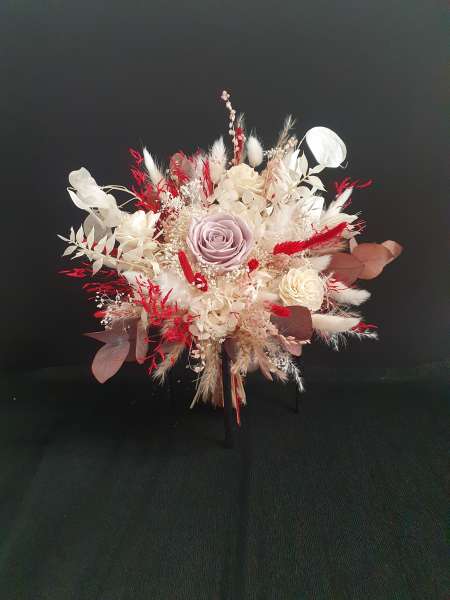 Für unsere Sträuße verwenden wir nur hochwertige Blumen. Alle Blumen sind echt und wurden entweder getrocknet oder stabilisiert. Die Rosen sind optisch kaum von frischen zu unterscheiden, halten aber über Jahre.