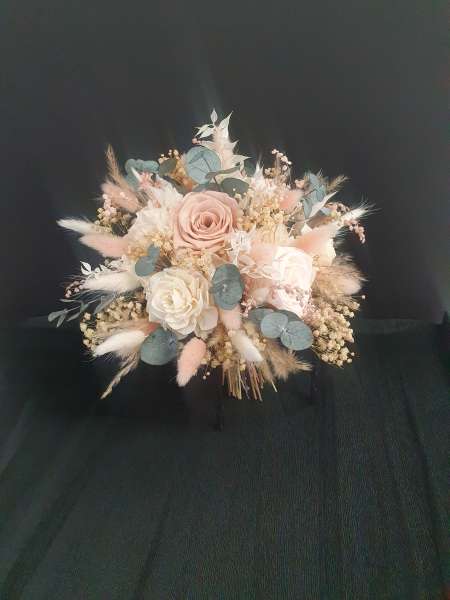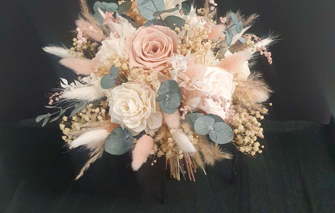 Die Hochzeitsdeko und Brautsträuße sind mit Infinityrosen und Trockenblumen angefertigt, die für die Ewigkeit bestimmt sind.