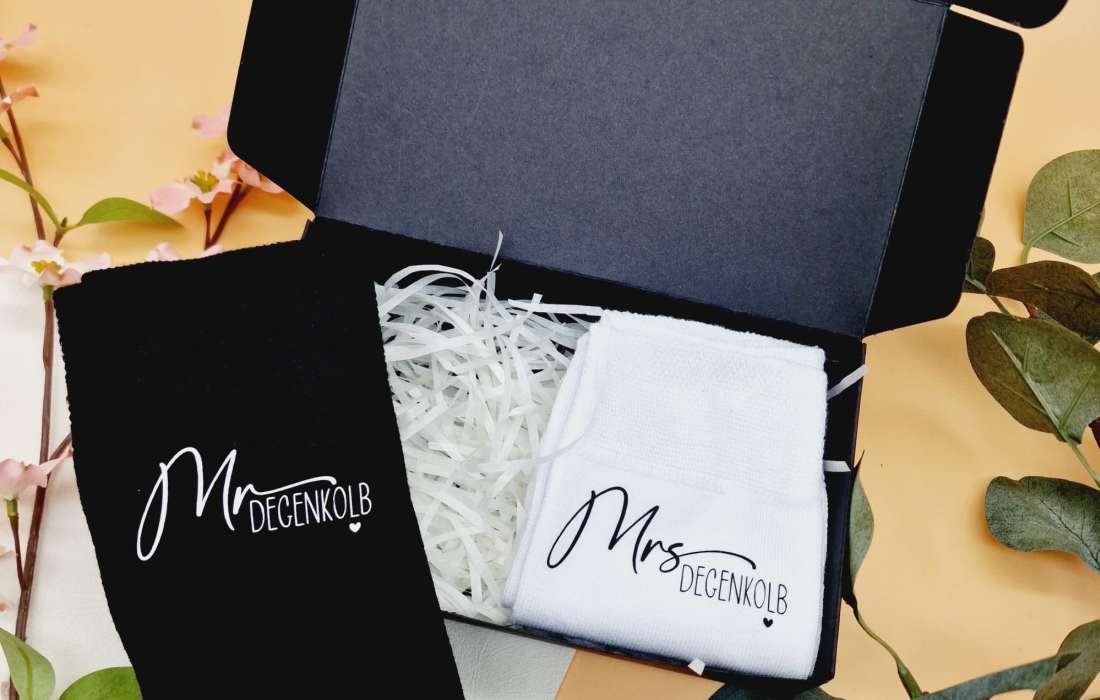 → Werdet liebevoll beschenkt mit personalisierten Handtücher, einem Aquarellportrait oder ein besonderer Fotohalter mit euren persönlichen Daten.