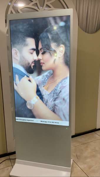 Wir nutzen modernste Technologie, um Ihre schönsten Momente auf lebendigen digitalen Bildschirmen zu präsentieren und so eine unvergleichliche Atmosphäre zu schaffen.