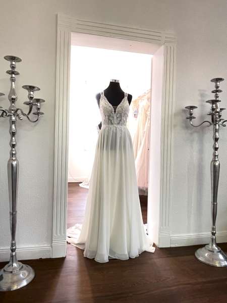 Wir versuchen alle Stile von der klassischen A-Linie, das Prinzessinenkleid, Mermaid, Empire, Trompete, Etui, Bohemian und Vintage für Euch zu kaufen. Um einen echten Outletpreis anbieten zu können sind vielleicht nicht immer alle Stilrichtungen vorrätig. Komm vorbei und finde Dein Traumkleid.