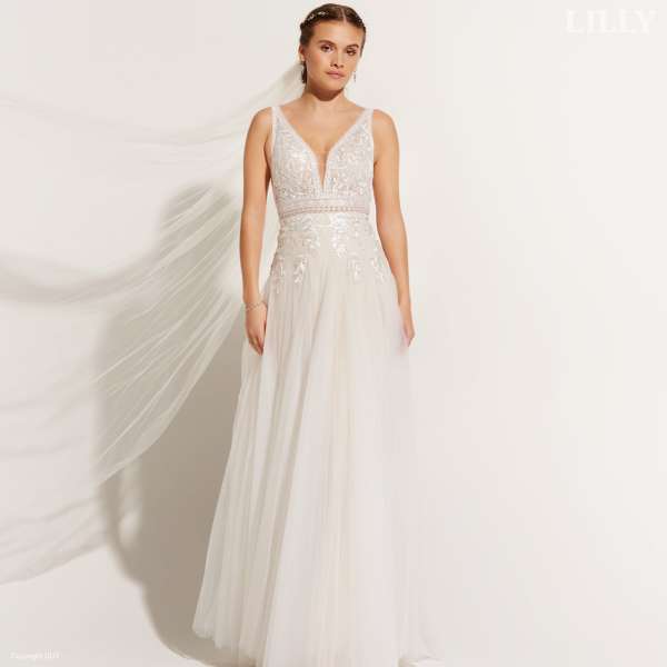 Bei LILLY in Düsseldorf erwartet dich die Deutschland-Weit größte Auswahl an LILLY Brautkleidern in Plussize von Größe 46 bis 54 - direkt zum Anprobieren!