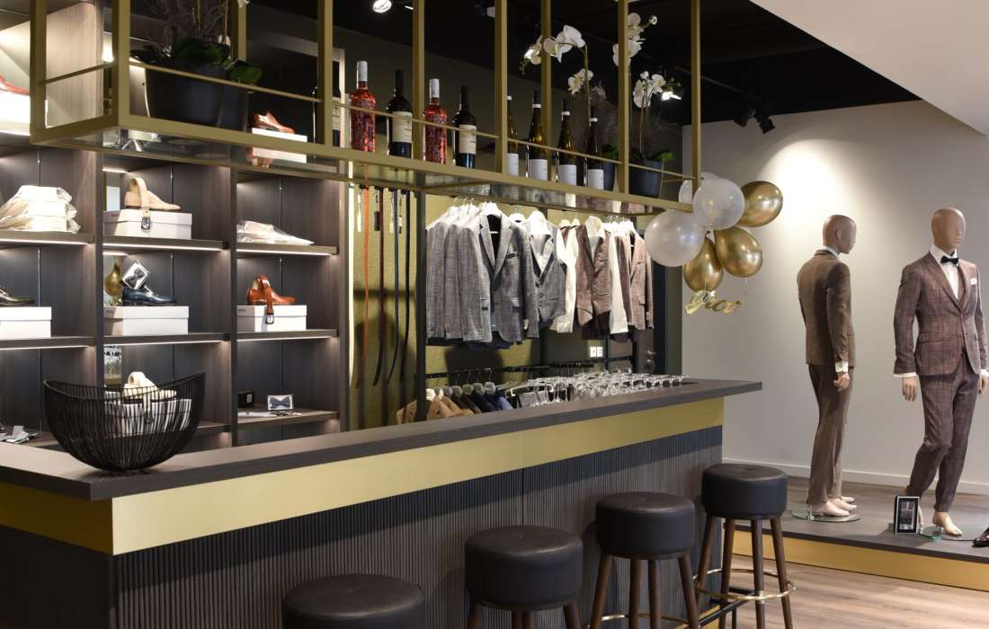 Der zukünftige Bräutigam findet im Erdgeschoss eine große Auswahl sowohl an klassisch zeitlosen Hochzeitsanzügen als auch an modernen Trends in verschiedenen Stilrichtungen und Farben. Ein persönlicher Stylist steht ihm beratend zur Seite auch bei der Auswahl eines italienischen Maßanzuges.