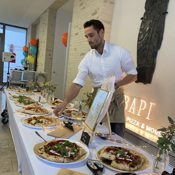 Einzigartig dekorierte neapolitanische Pizzabar, komplettiert zu einem Gänge-Menü durch