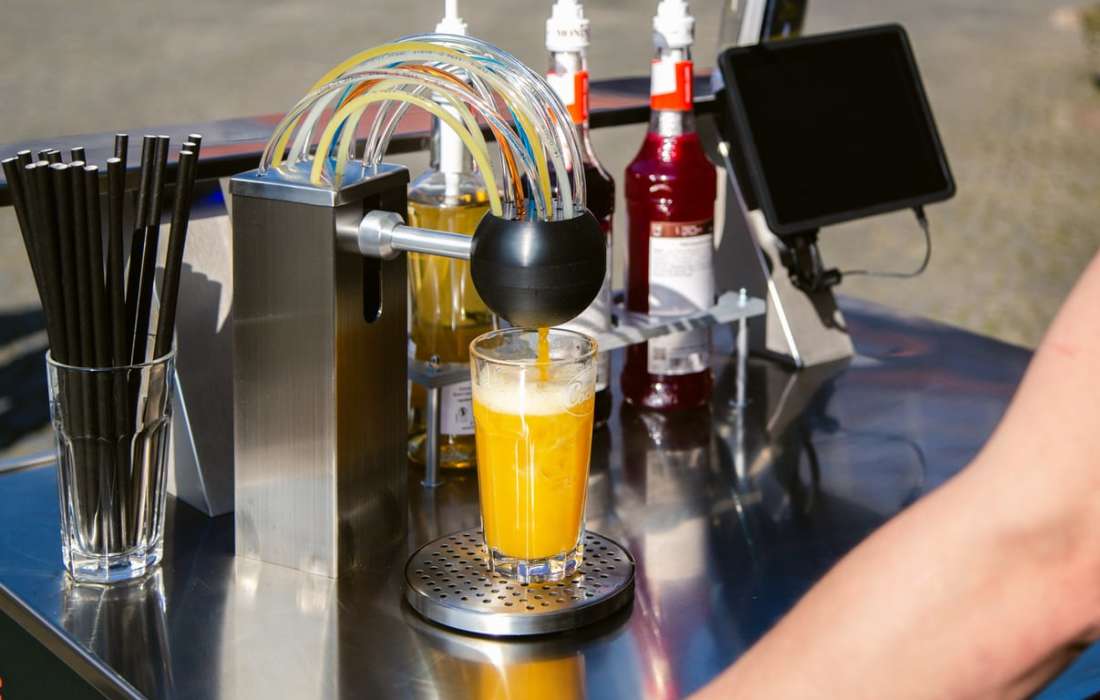 Mit dieser Cocktailanlage können Sie oder einer Ihrer fleißigen Helfer nach einer kurzen Einweisung von uns selbständig Cocktails für Ihre Gäste mixen.
