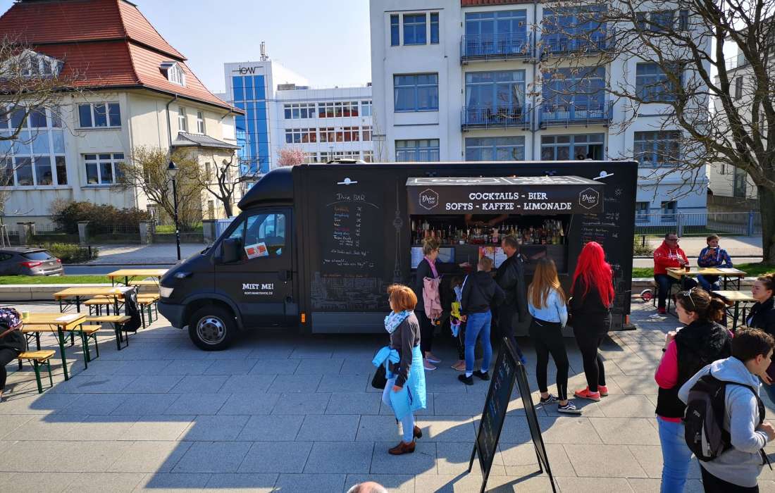 Der Truck funktioniert ganz klassisch als Bar-Truck, Bierwagen, Kaffeemobil oder als Glühwein-Truck in kalten Tagen. Das vorhandene Branding an der Vorderseite des Trucks ist individuell veränderbar, wodurch es sich ganz an Ihre Wünsche und an Ihr Unternehmen anpassen kann.