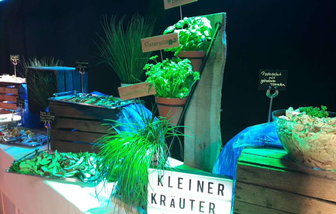 Sollte Ihre Räumlichkeit nicht entsprechend ausgestattet sein – kein Problem. Wir bringen alles mit! Ob Theken, Kühlschränke, mobile Küchen, Dekoration oder Technik. Ein ansprechender und geschmackvoller Auftritt ist für uns selbstverständlich.