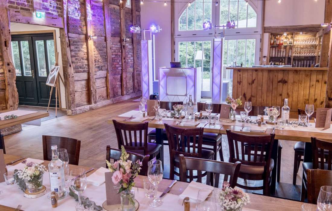 Lautsprecher & Licht werden auf die Größe der Location und Ihrer Gästeanzahl abgestimmt. Die Optik passt sich Ihren Wünschen an und kann dezent oder schick z.B. in weiß sein. Auch eine Ambiente-Wandbeleuchtung ist möglich.