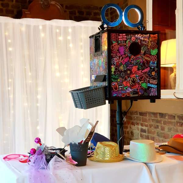 Unsere Fotobox „Robbie“ sorgt für Spaß und bleibende Erinnerungen. Die Gäste erhalten ihre Fotos direkt vor Ort – inklusive individuellem Layout mit QR-Code zum Download.