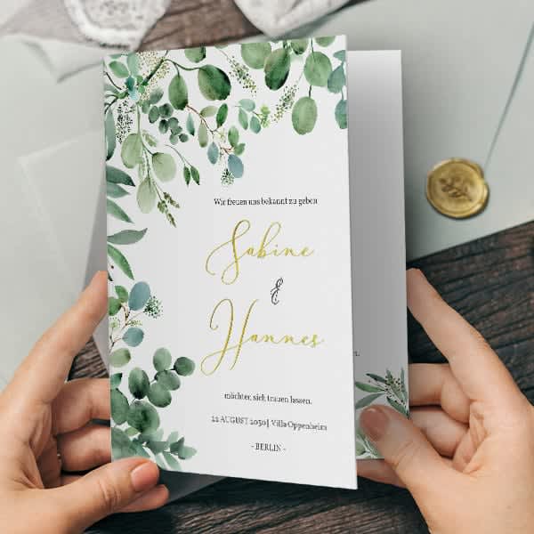 Alle Produkte auf wunderkarten kannst du ganz einfach online anpassen. Wähle aus verschiedenen Papierarten, Veredelungen, Farben und Schriftarten, um deine Karten perfekt zu gestalten. Die Druckqualität ist stets erstklassig, damit deine Hochzeitspapeterie einen bleibenden Eindruck hinterlässt.