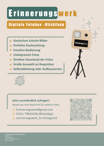 Dank ausgeklügelter Technologie können die Bilder ohne zusätzlichen Aufwand direkt auf das Handy heruntergeladen werden. Im Nachgang stehen die Fotos zusätzlich über einen Cloud-Link allen Gästen zur Verfügung, sodass Erinnerungen unkompliziert geteilt und immer wieder abgerufen werden können. Wer eine Fotobox in Heilbronn mieten möchte, erhält damit ein Rundum-sorglos-Paket, das Technik, Design und Spaß optimal kombiniert.