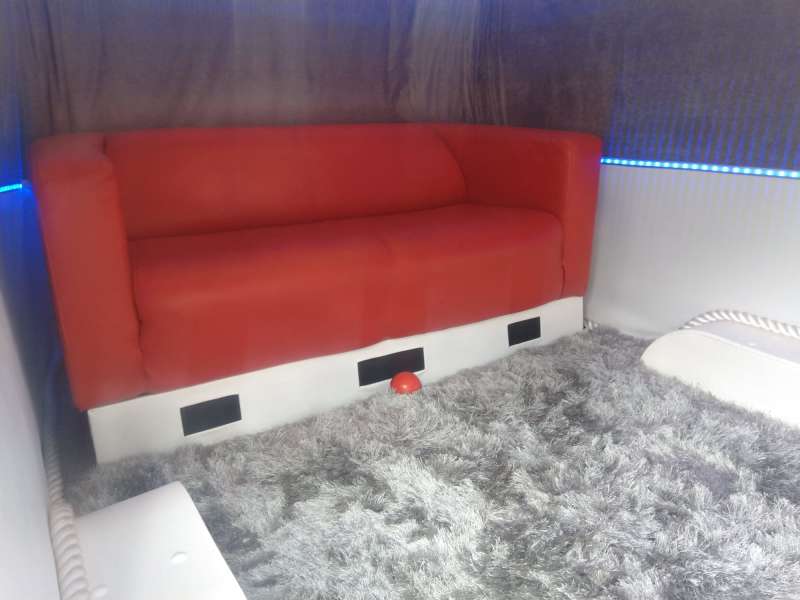 Ein Soundsystem mit Alexa Steuerung eingebaut sowie eine Minibar.