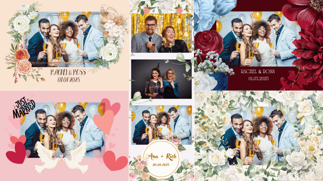 ✨ Individuelles Design von Fotobox, Bildschirm & Bilderrahmen – abgestimmt auf euer Hochzeitsmotto und die Dekoration.
