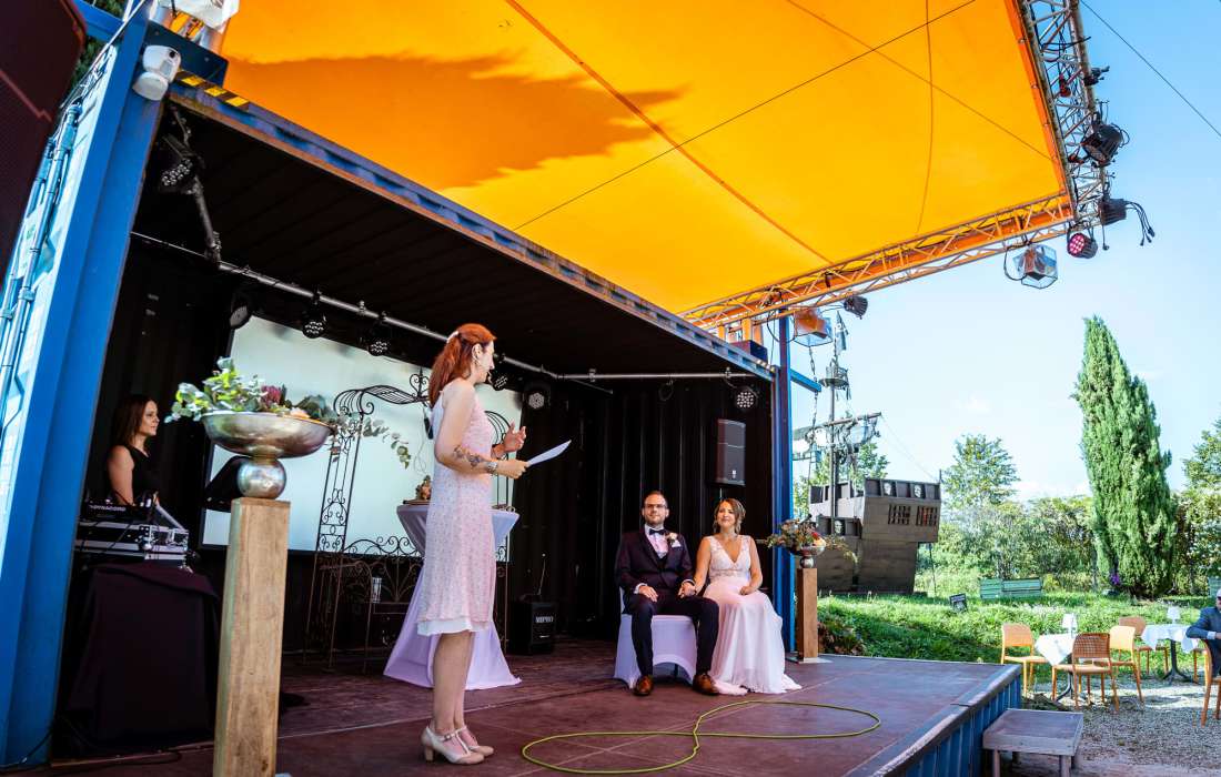 Liebe Barbara Christina, die Zeremonie mit den emotialen Worten und Beiträgen war so warmherzig und perfekt auf uns abgestimmt, dass der Tag für unsere Gäste und uns unvergesslich bleibt. Vielen Dank dafür und bleib so wie du bist! LG Sabrina und Sascha