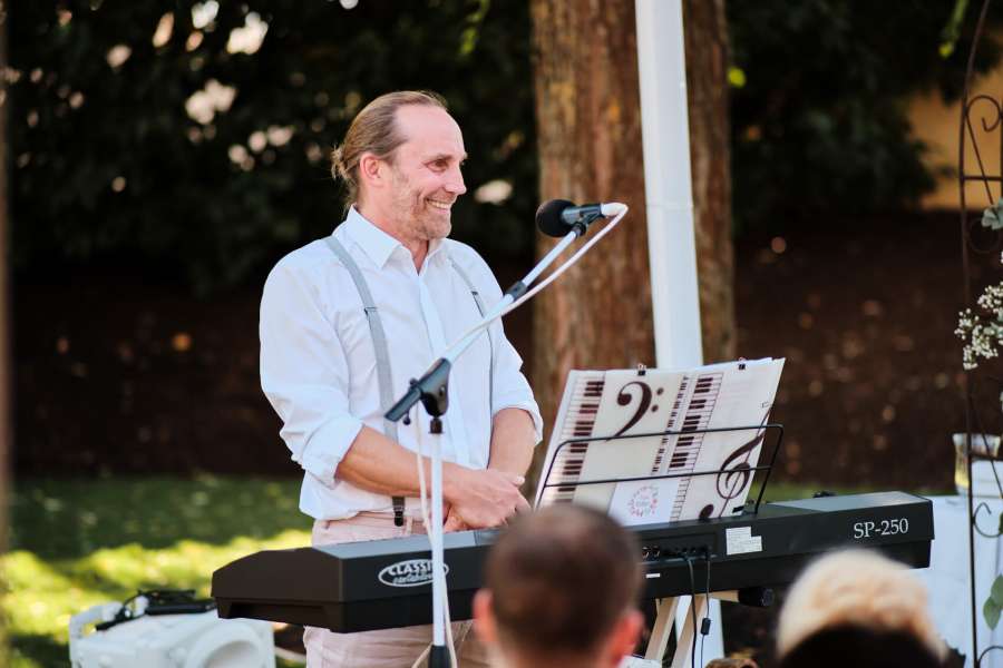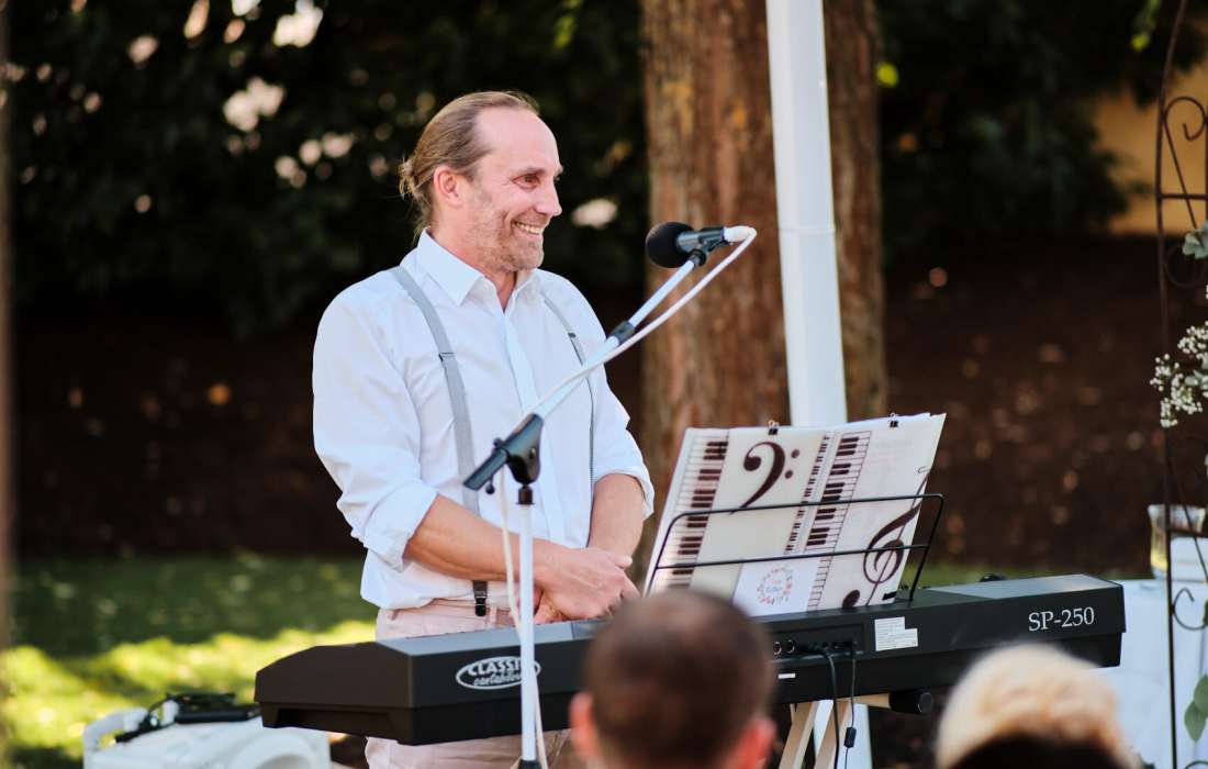 Sehr gerne begleiten wir im Anschluss an Eure Freie Trauung mit Livemusik auch Euren Sektempfang und/oder Euer Abendessen.
