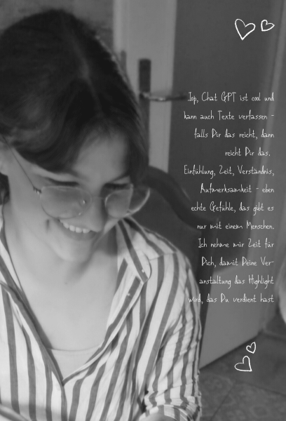 In unseren 30ern nun kam und kommt es des Öfteren vor, dass mein Mann, mein Kind & ich auf Hochzeiten sind. Auch dort sind die Reden immer mein Highlight. Als wir auf einer Hochzeit mit einer freien Traurednerin waren, dachte ich: "Ey, das wäre eigentlich total Dein Ding."