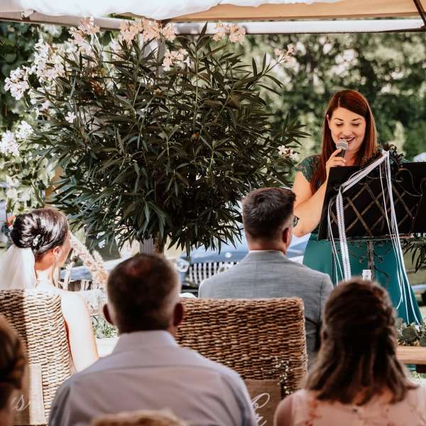 Und wie kam ich nun zum Beruf der freien Rednerin? Seit meiner eigenen Hochzeit 2008 geht mein Herz auf wenn ich an zwei Menschen denke, die sich wirklich lieben und dann beschließen ihren restlichen Lebensweg nun gemeinsam zu gehen. Im Jahr 2016 hat dann meine Schwägerin in einem kleinen Schlosspark geheiratet. Es war wunderschön! Die Sonne hat geschienen und der Wind spielte mit den Blättern der alten Eichenbäume. Ich habe mich selbst so unglaublich wohl dabei gefühlt. Das war der Punkt, an dem ich beschlossen habe selbst Trauungen durchzuführen.