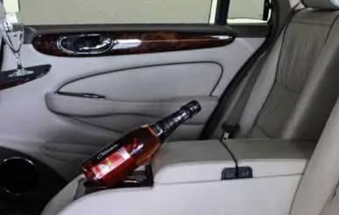 Die hellen komfortablen Ledersitze mit ausklappbaren Tabletts und Flaschenhalterung bieten den idealen Rahmen für Brautpaare.