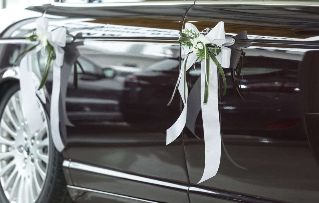 Mit dabei ist eine witterungsbeständige Blumendekoration für die Motorhaube und die Türgriffe, die einfach mit Saugnäpfen befestigt wird.