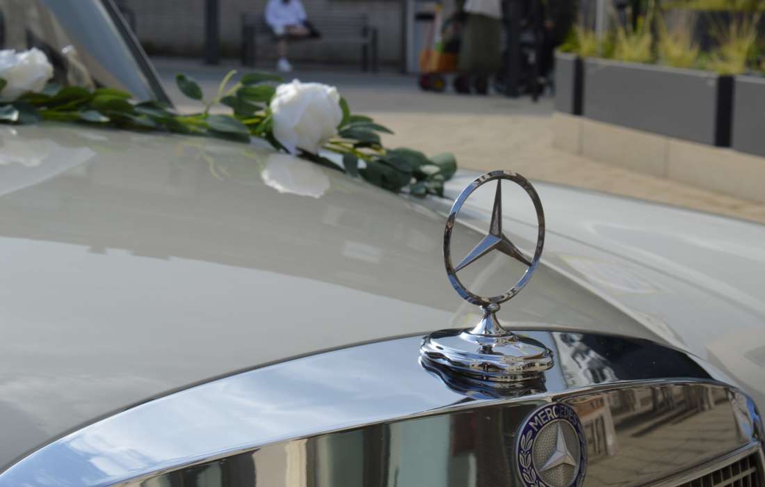 Wir bieten u.a. einen frisch restaurierten Mercedes Benz 280 SE W108, Bj 1969, für Hochzeitsfahrten mit Chauffeur an.