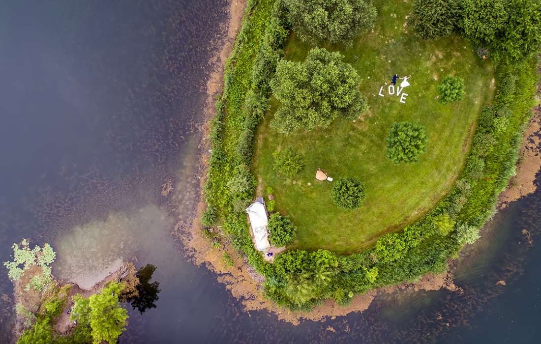 Seit 2014 setzen wir auch für die Hochzeitsfotos die Drohne ein. Foto und Film bei https://www.plushakoff.com