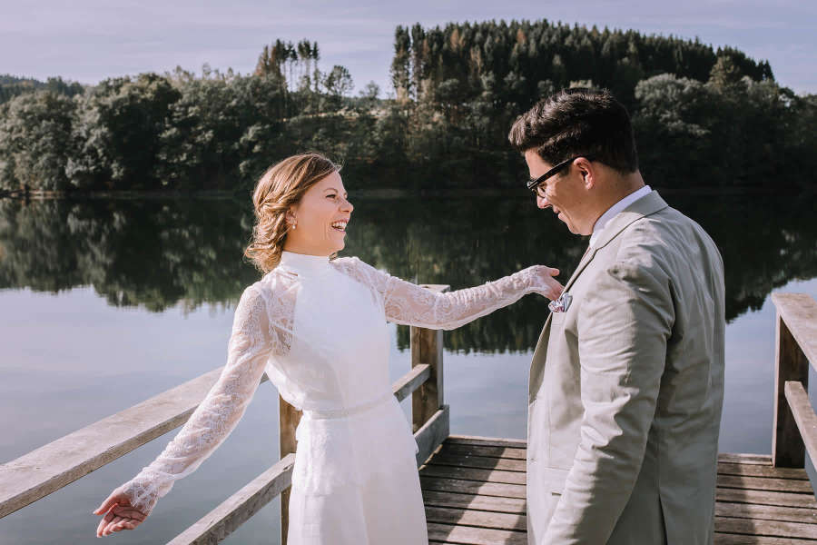 Bereits seit 10 Jahren werde ich von Brautpaaren gebucht, in deren Leben Bilder und Erinnerungen eine große Rolle spielen. Egal, ob sie von mir den ganzen oder nur den halben Tag begleitet werden, ist ihnen eines gemein: sie möchten sich auf ihre Fotografin hunderprozentig verlassen können, sodass sie am Ende wundervolle Erinnerungen in den Händen halten, die immer wieder das Bauchkribbeln aufleben lassen werden, das sie an ihrem großen Tag gespürt haben. Mein Anspruch ist es, Unsichtbares sichtbar zu machen, zur richtigen Zeit am richtigen Ort zu sein und auch den kleinen, zunächst unscheinbaren, aber dennoch wichtigen Details Aufmerksamkeit zu schenken und dabei stets das Endprodukt -eure Hochzeitsreportage- vor Augen zu haben, um euch eine stimmige und vollständige Reportage überreichen zu können.