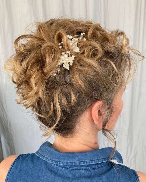 Meine Spezialität sind Hochsteckfrisuren und insbesondere Locken, die den ganzen Tag halten. Weil es nichts Schlimmeres und Peinlicheres gibt, als dass die Frisur nach wenigen Stunden auseinander fällt. Da ich ein Auge für das Schöne besitze, wird die Frisur auch von allen Seiten gut aussehen und auf die Kopfform der jeweiligen Kundin passen.