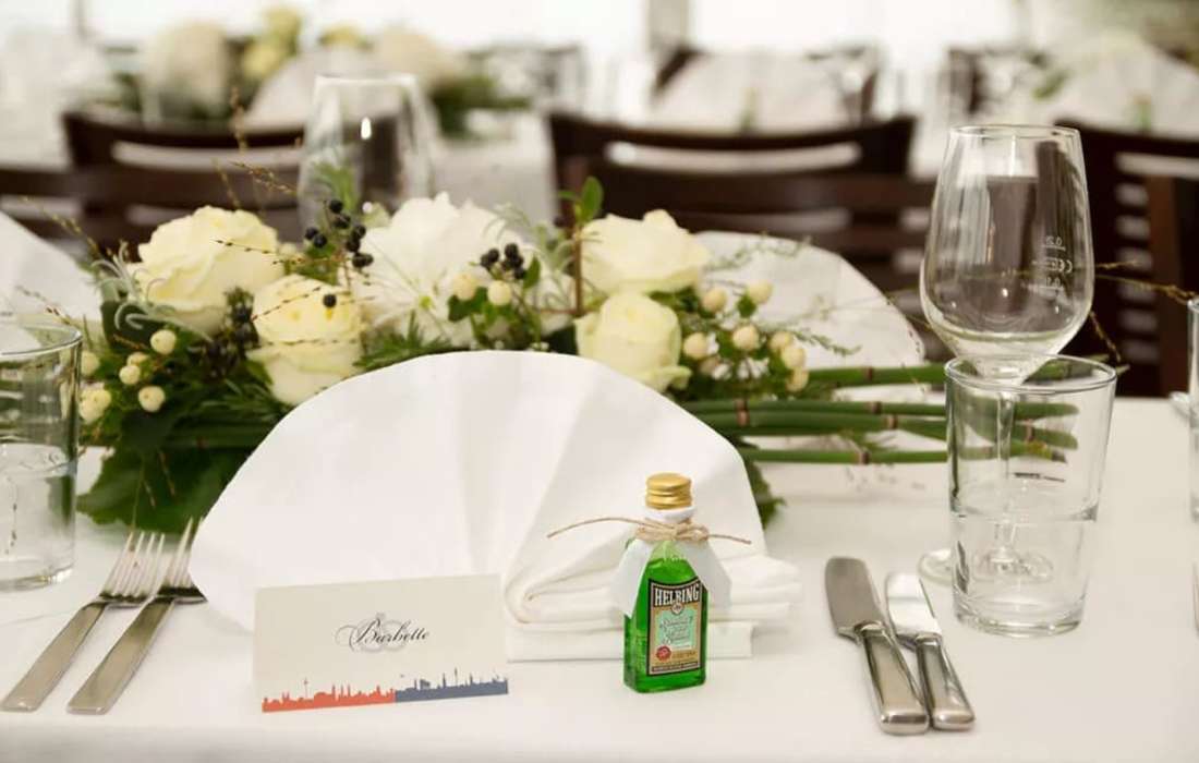 | Angebotene Verköstigung | Buffet, Fingerfood, Sektempfang, Kuchenbuffet, Mitternachtssnack, Cocktails, Kaffeespezialitäten, Menü |