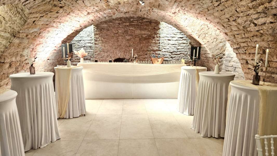 Feiern Sie in unserer charmanten Eventlocation im Herzen von Reutlingen. Unser historischer Gewölbekeller mit echtem Wasserlauf schafft die perfekte Kulisse für außergewöhnliche und besondere Hochzeiten sowie Trauungen. Durch unsere zusätzliche Fachwerkstube ist es möglich, eine Feier auf zwei Ebenen zu gestalten. Ideal für intime Hochzeiten mit bis zu 50 Gästen.