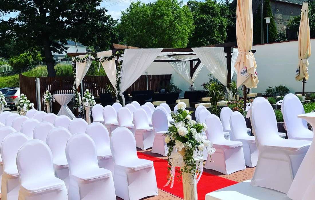Für Feierlichkeiten stehen zwei Säle zur Verfügung. Ein kleiner Saal für 20 bis 50 Personen und ein großer Festsaal für 50 bis 150 Personen, welche individuell geschmückt werden können. Für die musikalische Ausgestaltung jeglicher Feierlichkeit stellt das Gasthaus ein professionelles technisches Equipment zur Verfügung. Im Außenbereich kann zudem eine festliche Hochzeitsterrasse mitgenutzt werden. Zudem ist Platz für Freie Trauungen vorhanden. Direkt am haus befindet sich ein großer Parkplatz.