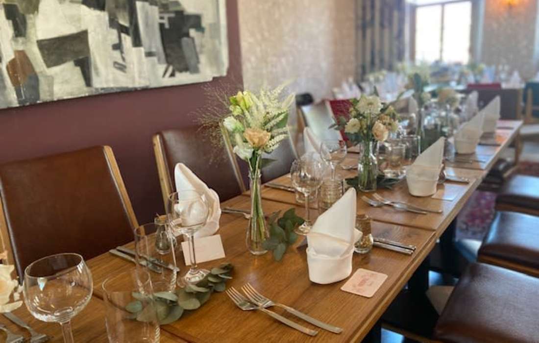 Unsere Räumlichkeiten bieten Platz für jede Art von Feier: Im Erdgeschoss können bis zu 100 Gäste unvergessliche Momente erleben, während im ersten Obergeschoss bis zu 50 Personen in einem gemütlichen Ambiente feiern können. Für eine besondere Atmosphäre steht Ihnen unser Gewölbekeller ( Oktave7 ) zur Verfügung, der Platz für bis zu 60 Gäste bietet. Ob mit DJ, Live-Musik oder Ihrer eigenen Playlist – wir gestalten Ihre Feier ganz nach Ihren Wünschen. Zudem sind wir zentral gelegen, auf dem historischen, alten Marktplatz. Das Standesamt befindet sich gegenüber in der alten Hugenottenkirche. Für Übernachtungen, können Sie individuell eingerichtete Zimmer im Hotel zur goldenen Sonne, nur einen Spaziergang entfernt, buchen.