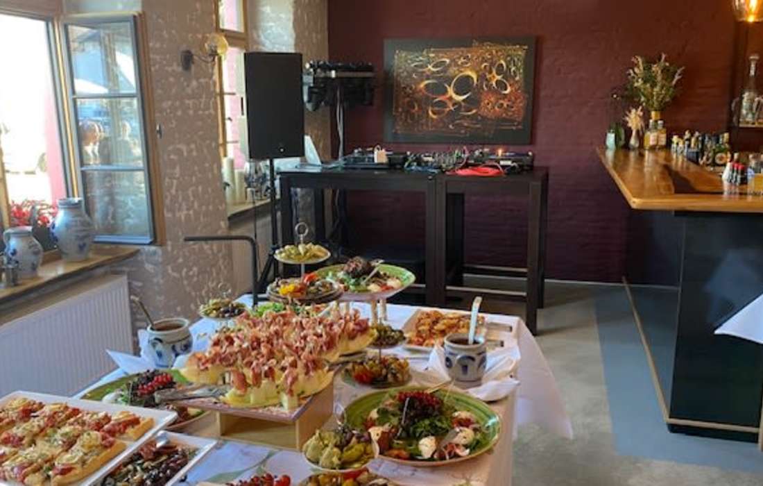 | Angebotene Verköstigung | Buffet, Fingerfood, Kuchenbuffet, Cocktails, Kaffeespezialitäten, Sektempfang, Mitternachtssnack |