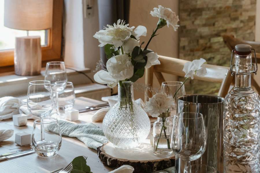 Angefangen von einer freien Trauung auf unserer Trauwiese mit Blick über den Kraichgau, Sektemfang mit Häppchen auf unserer großen Außenterrasse, Dinner im klimatisierten Hauptraum bis hin zum tanzen in die frühen Morgenstunden ohne Sperrstunden in unserem gemütlichen Wintergarten.