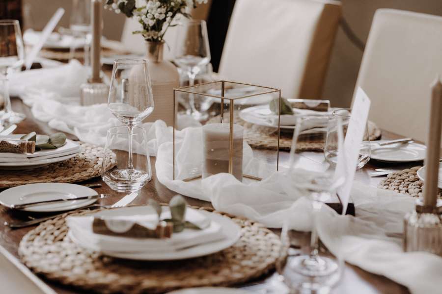 Bei uns bucht ihr das rundum sorglos Paket inklusive Tischdekoration, DJ und Hochzeitsplaner.