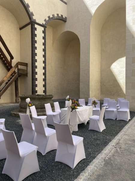 Ob unter freiem Himmel im romantischen Burghof oder in einem unserer großartigen, historischen Räumlichkeiten - jede Location hat ihren eigenen Zauber. Ganz gleich, ob Ihr eine standesamtliche, kirchliche oder eine freie Zeremonie plant, bei uns könnt Ihr Eure Trauung und Feier an einem Ort erleben, ohne lange Wege oder Unterbrechungen in Kauf nehmen zu müssen.
