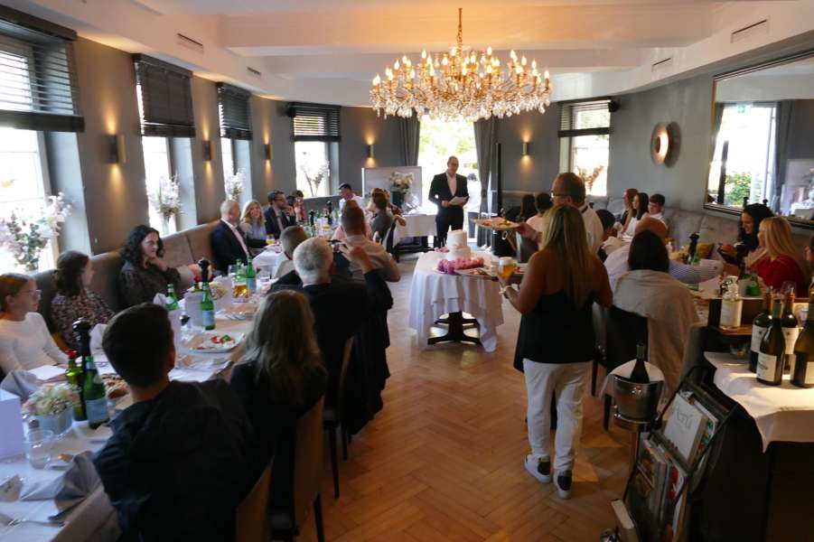 Große Saal 60 sitzend, 120 im stehen, Terrasse 35, Keller 15