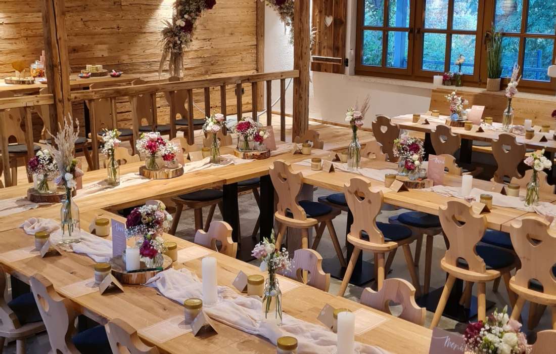 Eine Eventlocation für den ganz besonderen Moment. Feiern wie in den Bergen, urig mit Altholz, gemütlich und doch so nah.