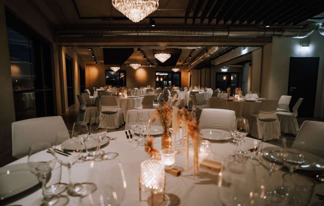 Ob 50 oder 120 Gäste - durch die flexible Raumgestaltung und Tischanordnung wird immer das passende Raumgefühl erzeugt. Lassen Sie sich von unseren Raumkonzepten überzeugen.
