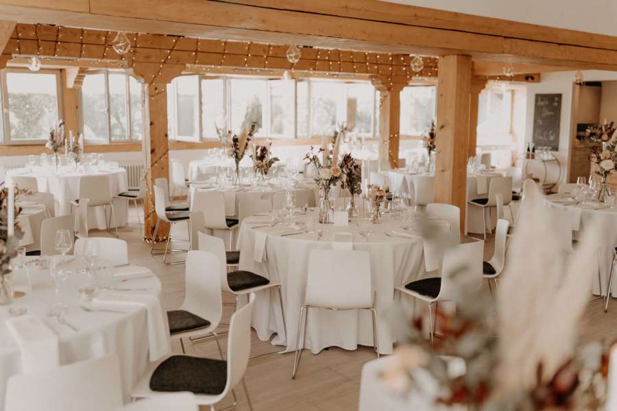 | Erklärung zur Gästezahl | Mit unseren runden Tischen finden sich hier Platz für rund 100 Gäste inklusive Tanzfläche. Bei unseren eckigen Tafeln können sogar bis zu 150 Gäste beim wichtigsten Tag eures Lebens mit dabei sein |