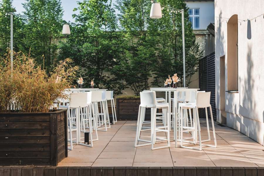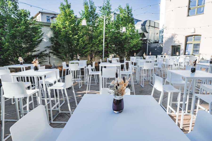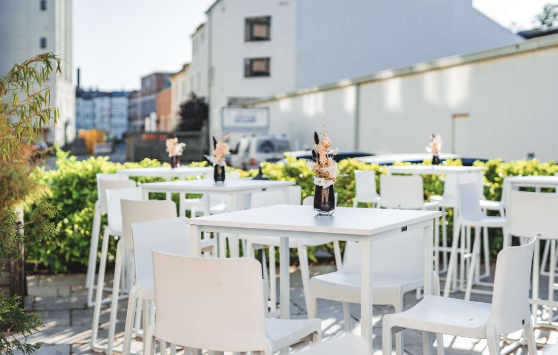 - zwei begrünte Außenterrassen für Hochzeit im Freien