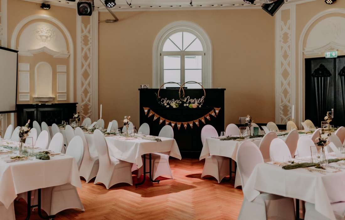Unsere Eventlocation ist nicht einfach nur ein Veranstaltungsort - sie ist ein Ort voller Charme und Persönlichkeit. Der Spiegelsaal, ein barocker Schatz mit echtem Holzparkett, schafft eine einzigartige Atmosphäre, die eure Hochzeit unvergesslich macht. Die Liebe zum Detail in der Gestaltung dieses Raums wird euch und eure Gäste begeistern.