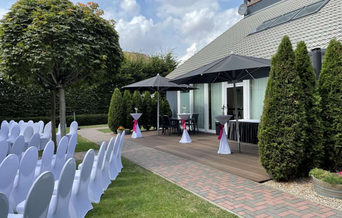 Unser Haus bietet Platz für bis zu 130 Gästen und ist mit einer professionellen Licht-& Tontechnik ausgestattet. Unser hochmotiviertes Team steht Ihnen bei der Planung Ihres besonderen Festes sehr gern zur Verfügung. Lassen Sie sich von der Vielzahl der Möglichkeiten unserer Eventlocation verzaubern: ein Sektempfang in unserem Garten, ein familiärer Umtrunk oder eine angesagte Party – wir machen Ihre Hochzeitsfeier perfekt. Versprochen.