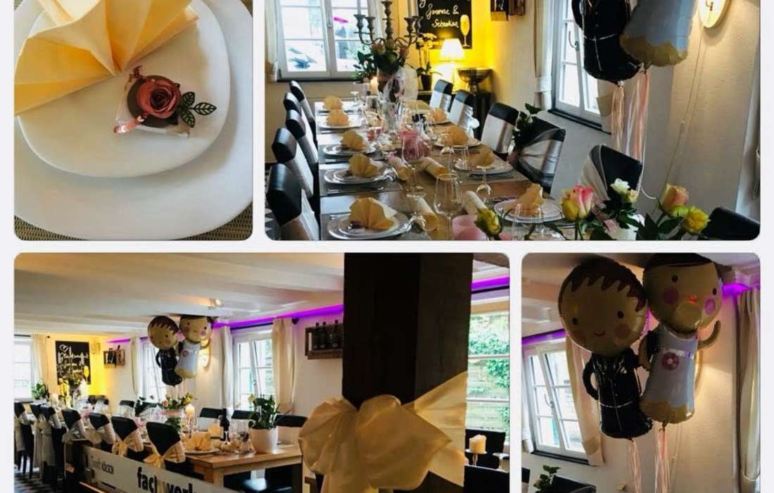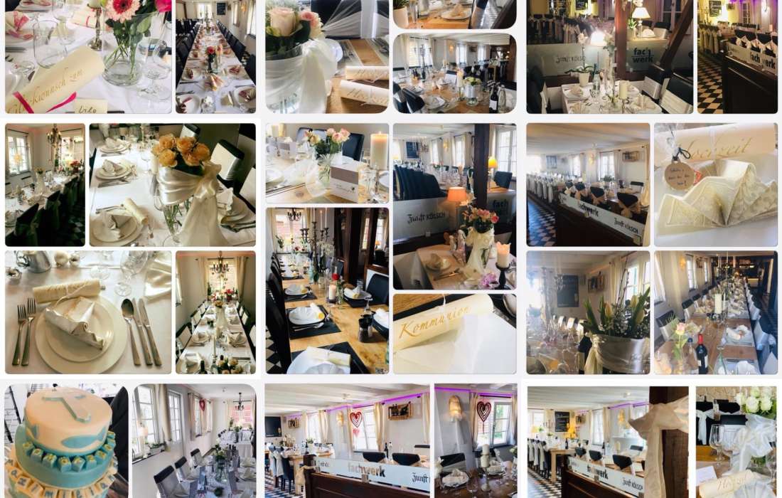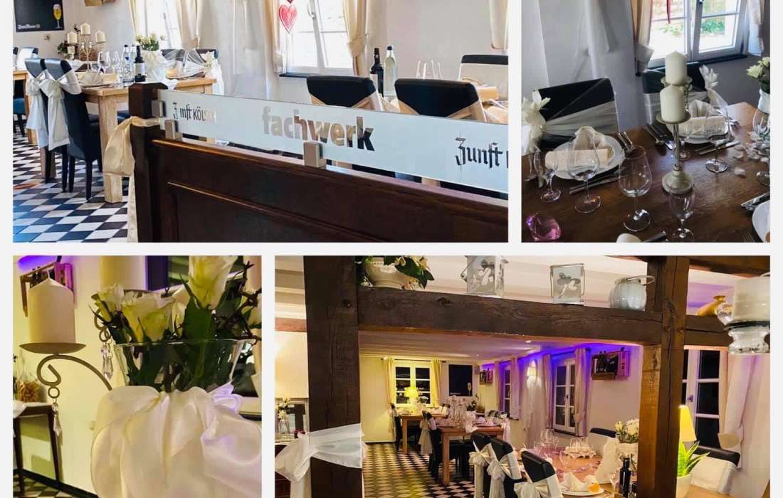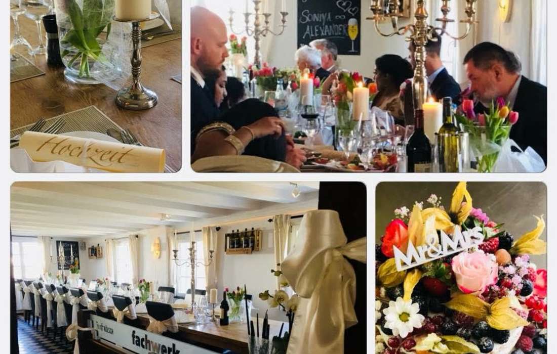 Wir kümmern uns um die Organisation & Durchführung Ihrer Hochzeitsfeier und stehen Ihnen mit Rat und Tat zur Seite. Individuelle Vorbesprechungen voller Vorfreude, Probeessen, so wie die Planung und Umsetzung Ihrer Wünsche machen Ihre Hochzeit zu einer perfekten Feier in einem einzigartigem stilvollen fachwerk Ambiente. Am schönsten Tag im Leben sollten Sie Ihre Gedanken & Gefühle einfach fliegen lassen, mit Ihren Liebsten einen unvergesslichen Tag feiern voller Liebe, Glück und Zufriedenheit. Wir freuen uns auf Ihre Hochzeit und eine unverbindliche Terminanfrage. Ihr Ansprechpartner rundherum Ihrer Hochzeitsfeier ist Frau Tajana Juric.